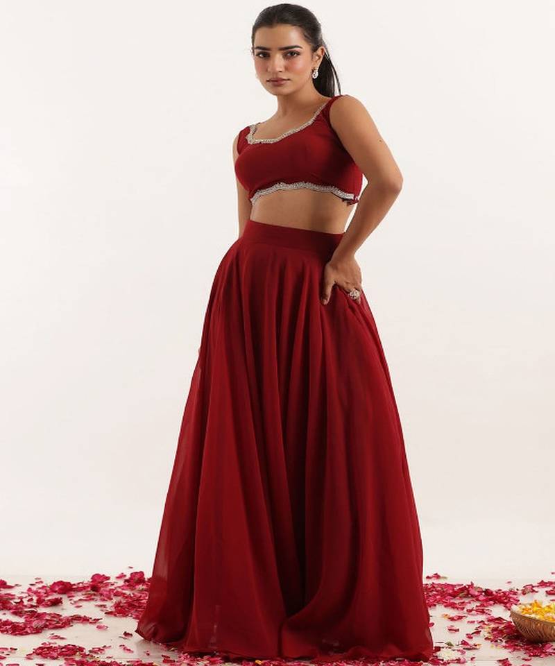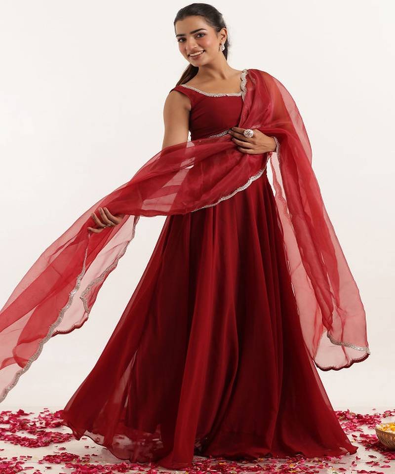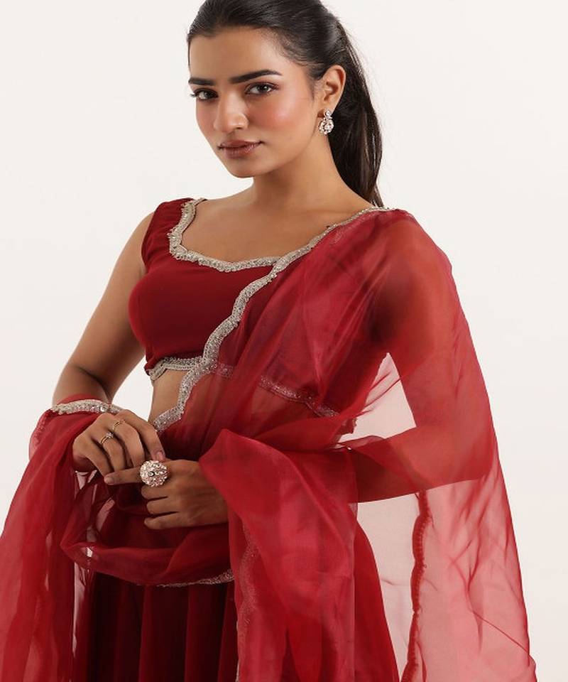| • | Dupatta | : | Color- Maroon / Fabric- Organza |