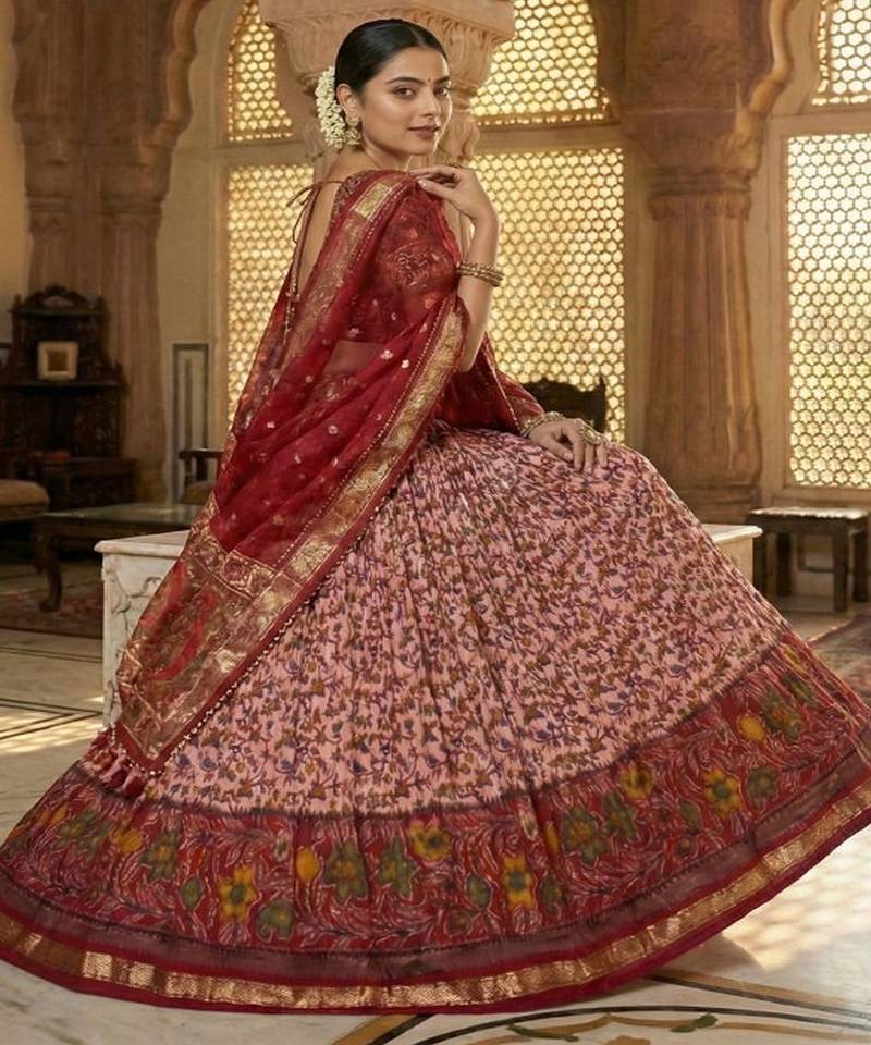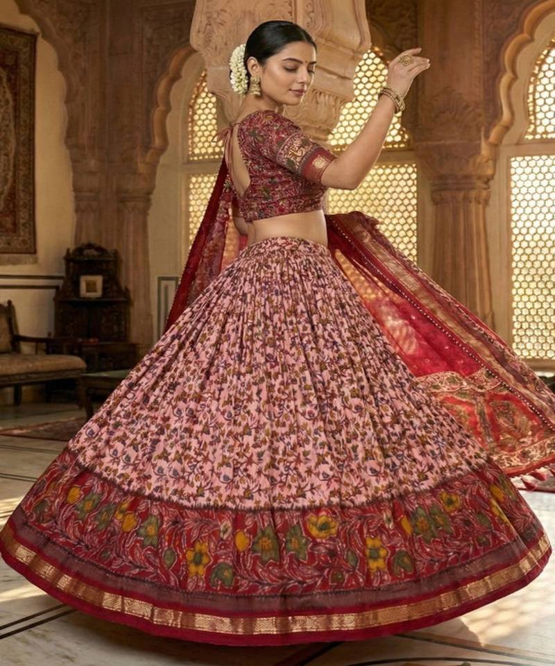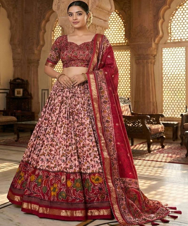 Printed kalamkari ready to wear lehenga & unstiched blouse with dupatta