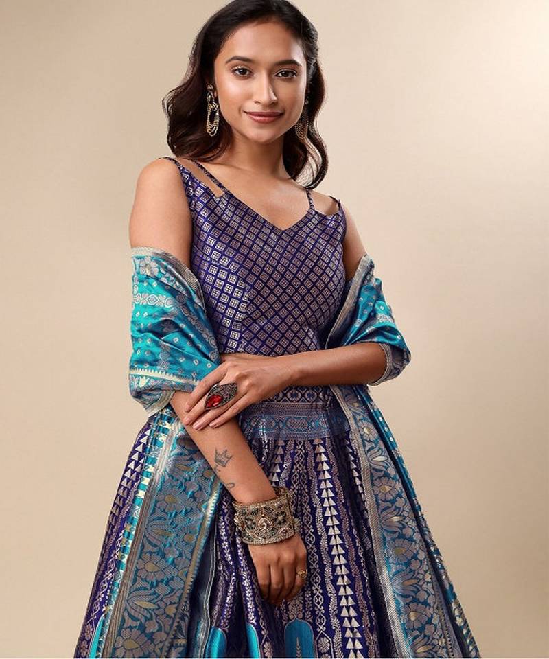 | • | Dupatta | : | Color- Navy Blue / Fabric- Art Silk |