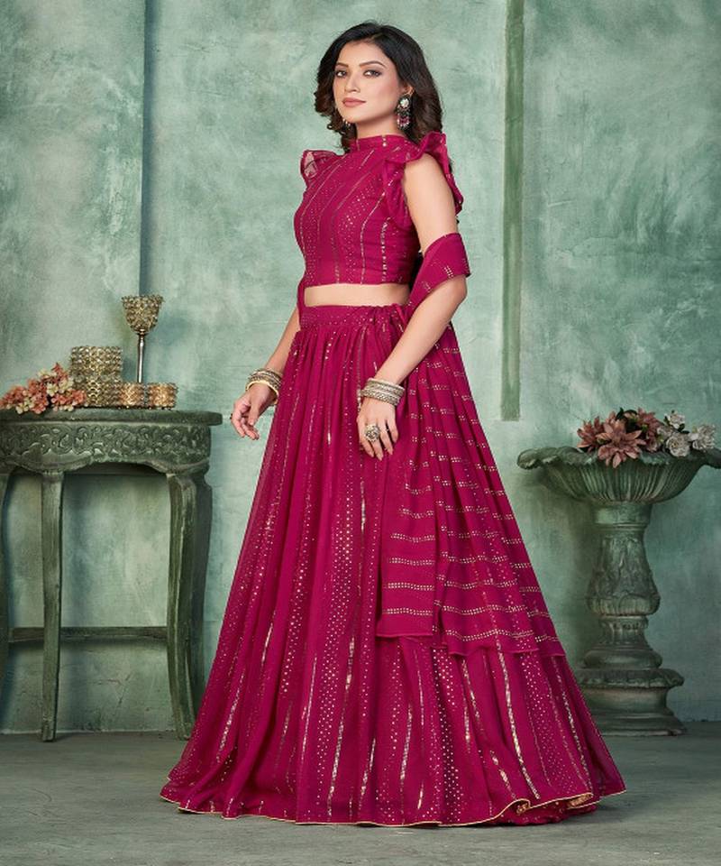 Women embroidered mukaish foil semi stitched lehenga with dupatta lehenga choli