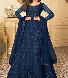 Butterfly net fabrics wedding wear gown in blue color with embroidery work semi stitched