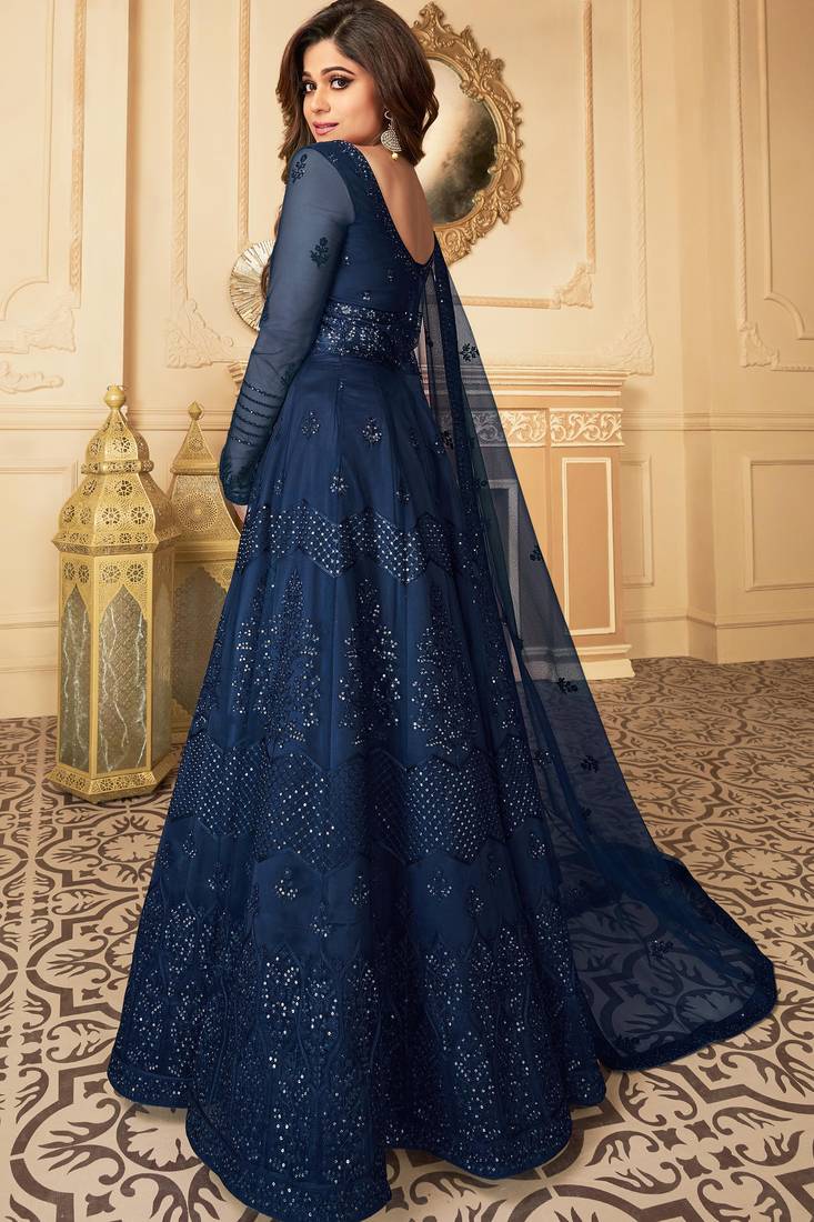 | Product Name | Butterfly Net Fabrics Wedding Wear Gown In Blue Color With Embroidery Work | |