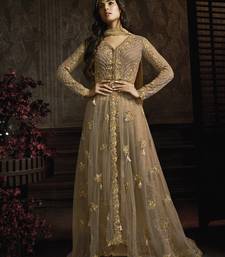 Butterfly net fabrics wedding wear gown in golden color with embroidery work semi stitched