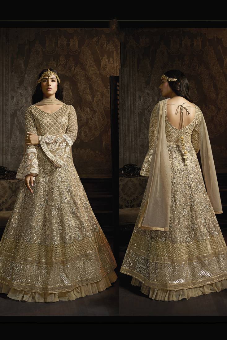 | Product Name | Butterfly Net Fabrics Wedding Wear Gown In Golden Color With Embroidery Work | |