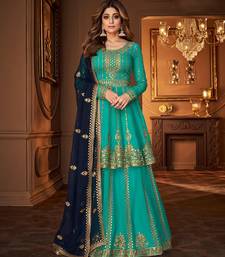 Georgette party wear sharara in turquoise color with embroidery work semi stitched
