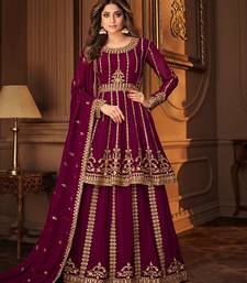 Georgette party wear sharara in violet color with embroidery work semi stitched