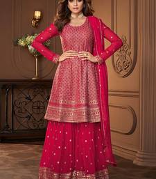 Pure georgette party wear sharara in pink color with embroidery work semi stitched