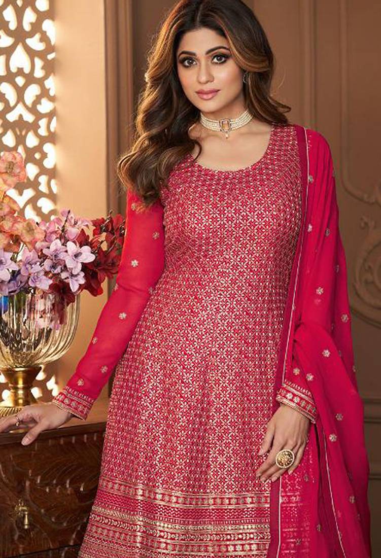 | • | Kameez | : | Color- Pink / Fabric- Pure Georgette |