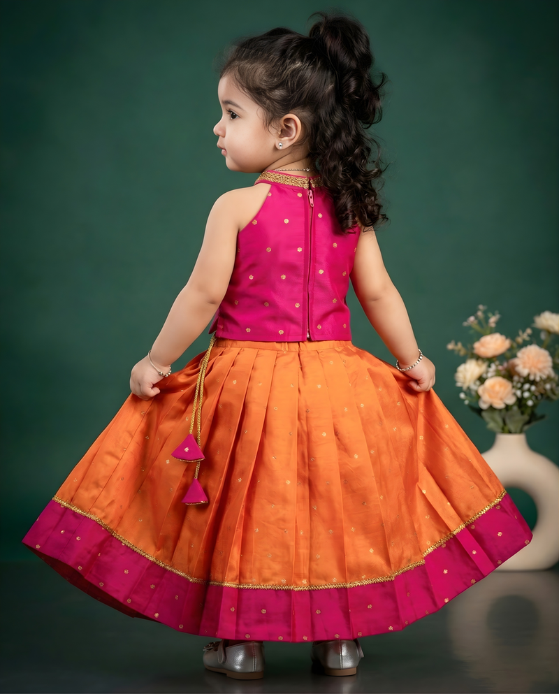 Baby girls fleared pattern dress sleevless readymade ethnic traditional lehnga choli set orange&pink