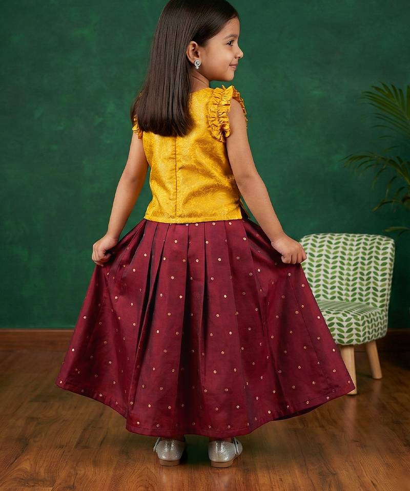 Maroon & yellow combo baby girls silk lehenga choli | traditional party perfect & festive dress