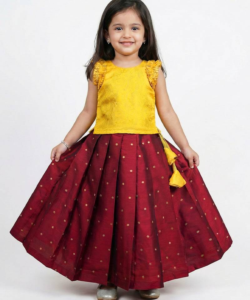 | Product Name | Maroon & Yellow Combo Baby Girls Silk Lehenga Choli | Traditional Party Perfect & Festive Dress | |
