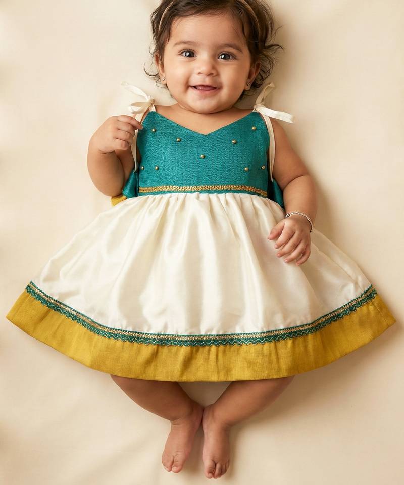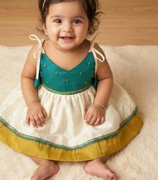 Kids newborn babygirl silk frock::Diwali dress::Ethnicwear::Festive indianwear cream&green
