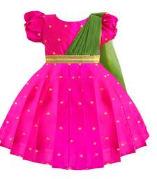 Pink & green combo silk saree frock for girls south indian partywear dress