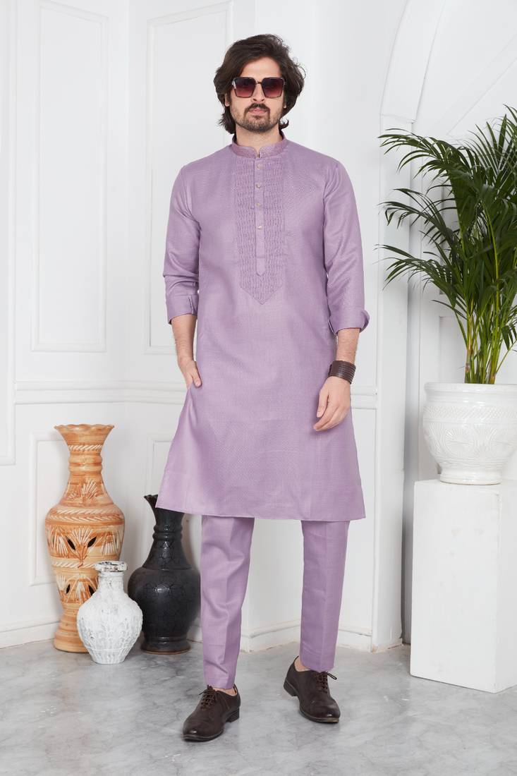 Men's purple plain kurta pajama
