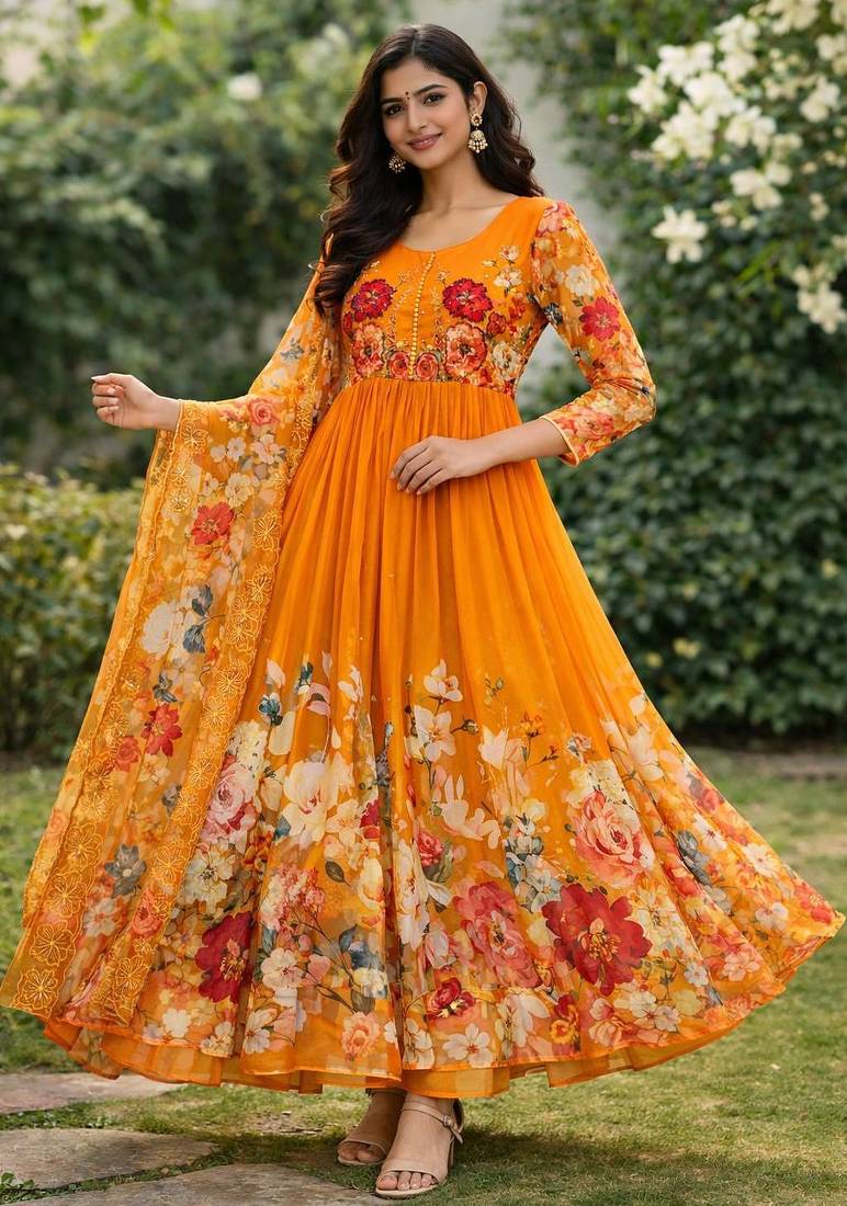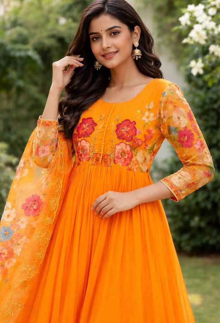 | Product Name | Womens New Fancy Fox Georgette Heavy Quality Fabricwith Handwork Gown Set | |