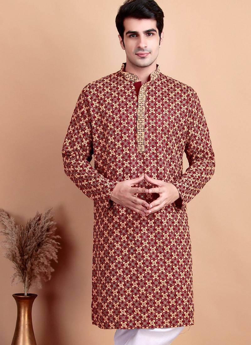 | Product Name | Maroon Chikankari Cotton Embroidery Men Kurta | |