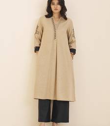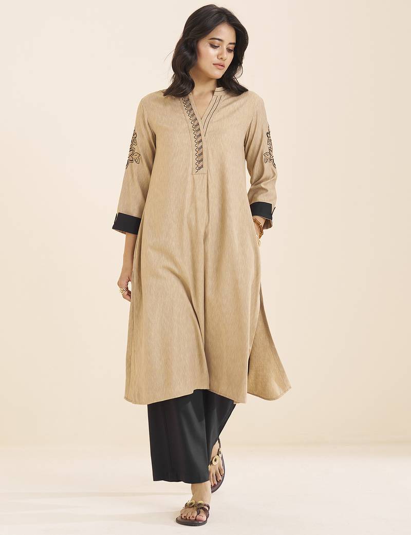 | Product Description | Update Your Casual Wardrobe With This Beige Viscose Blend Kurta, Designed With A Straight Fit, Soft Texture, And Subtle Detailing For A Clean And Comfortable Look. Crafted From A Viscose Blend Fabric, The Kurta Feels Smooth And Lightweight, Making It Ideal For Daily Wear. The Beige Tone Gives A Balanced And Versatile Base, While The Minimal Embroidery On The Neckline And Sleeve Accents Add A Refined Touch Without Making The Design Look Heavy. The Contrast Detailing On The Cuffs Brings A Slight Highlight To The Overall Look. The Straight Silhouette Offers Ease Of Movement And A Relaxed Fit. The Fabric Drapes Neatly, Giving A Structured Yet Easygoing Finish That Works Well For Everyday Styling. A Good Choice For Casual Outings, Workwear, And Day To Day Wear, This Kurta Pairs Easily With Pants Or Palazzos For A Simple And Well Coordinated Outfit. |