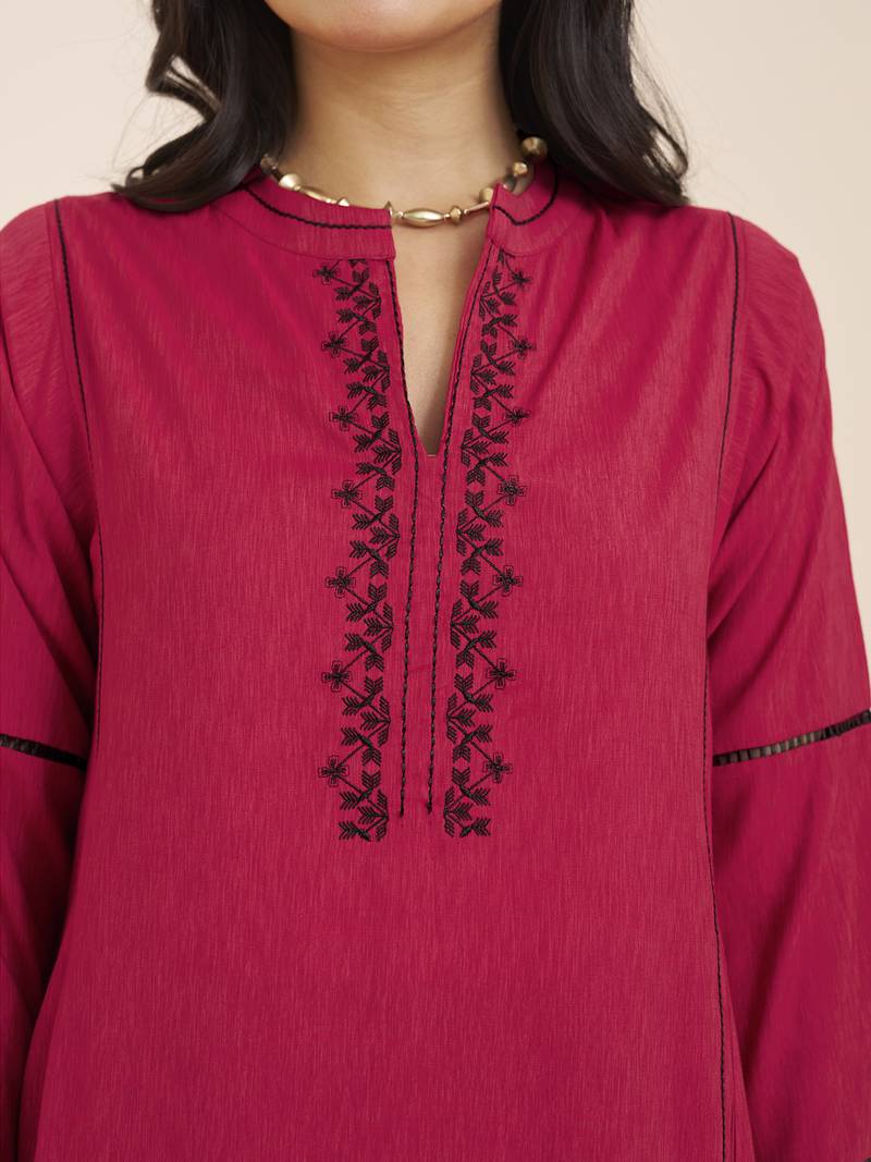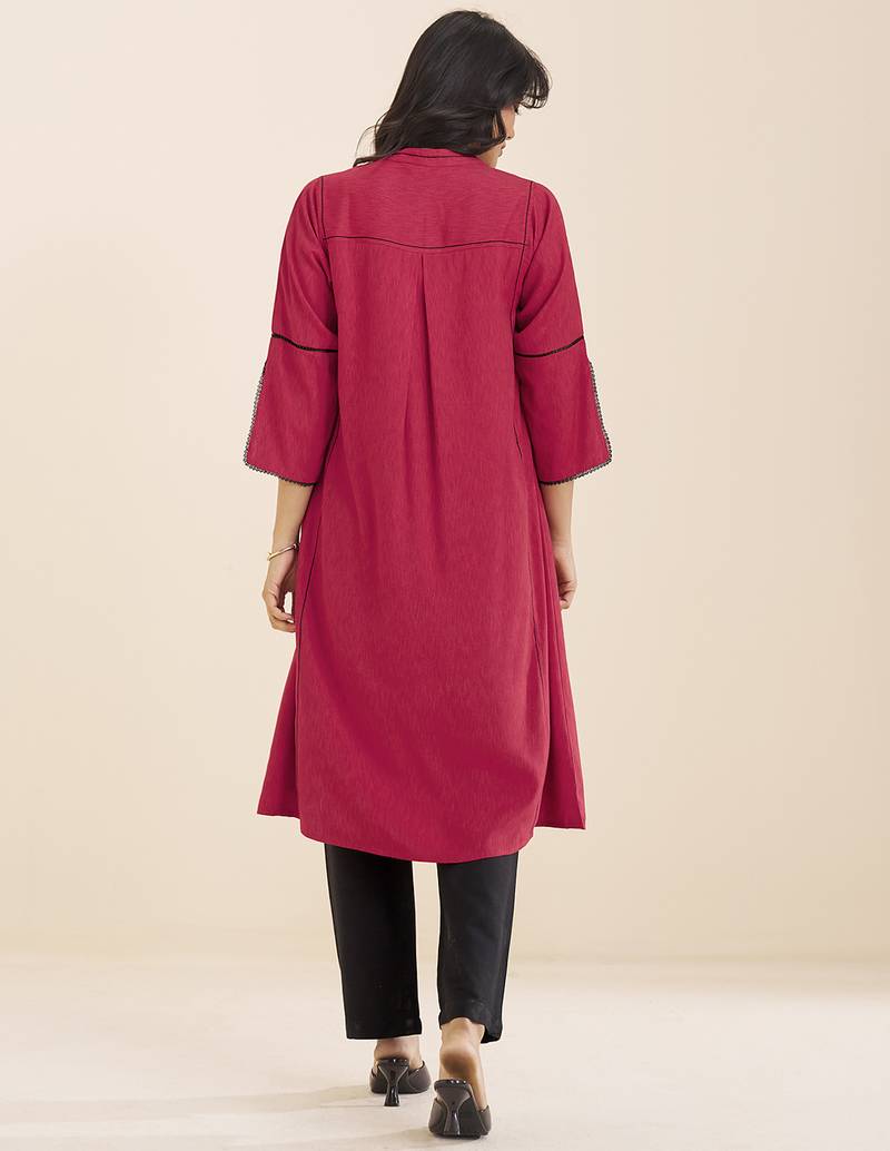 | Product Description | Refresh Your Everyday Wardrobe With This Red Viscose Blend Kurta, Designed With A Straight Fit, Soft Texture, And Subtle Detailing For A Clean And Balanced Look. Crafted From A Soft Viscose Blend Fabric, The Kurta Feels Smooth And Lightweight, Making It Comfortable For All Day Wear. The Rich Red Tone Creates A Strong Base, While The Minimal Embroidery On The Neckline And Contrast Detailing On The Sleeves Add A Refined Touch Without Making The Design Look Heavy. The Straight Silhouette Offers A Relaxed Fit And Allows Easy Movement. The Fabric Drapes Neatly, Giving A Structured Finish That Works Well For Daily Styling. A Practical Choice For Workwear, Casual Outings, And Day To Day Wear, This Kurta Pairs Easily With Pants Or Palazzos For A Simple And Well Put Together Outfit. |