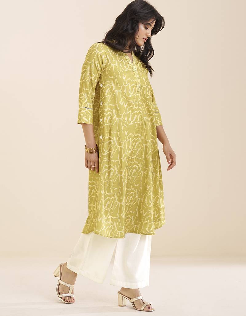 | Product Description | Keep Your Everyday Style Simple And Refined With This Light Yellow Linen Blend Kurta, Designed With Modern Prints And A Clean Finish. Crafted From A Linen Blend Fabric, The Kurta Feels Light And Breathable, Making It Comfortable For All Day Wear. The Soft Light Yellow Tone Gives A Fresh And Easy Look, While The Subtle Printed Pattern Adds A Modern Touch Without Making The Design Look Busy. The Straight Silhouette Offers A Relaxed Fit And Allows Ease Of Movement. The Kurta Drapes Well And Provides A Neat Appearance, Making It Suitable For Daily Wear As Well As Casual Outings. The Well Finished Neckline And Sleeves Add To The Overall Clean Look. A Good Choice For Workwear, Casual Days, And Simple Gatherings, This Kurta Pairs Well With Pants Or Palazzos, Creating A Comfortable And Well Balanced Outfit. |