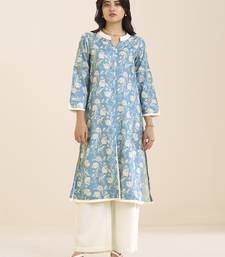 Women’s premium blue linen blend printed kurta