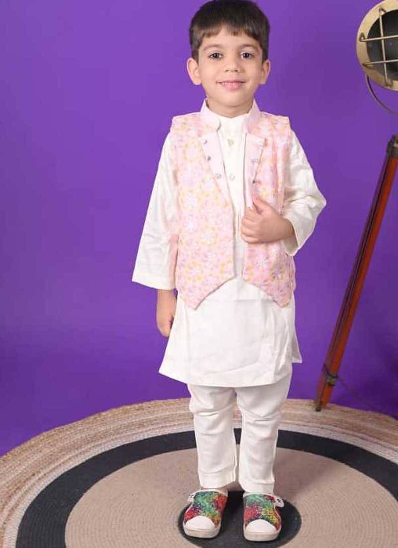 | Product Description | Dress Your Little One In Charming Ethnic Style With This Pink Embroidered Jacket Paired With A Classic White Kurta And Pant Set. The Soft Pastel Jacket Features Delicate Embroidery, Adding A Festive Yet Playful Touch To The Outfit. The White Kurta And Pant Create A Clean And Elegant Base, Perfectly Balanced By The Stylish Jacket For A Complete Traditional Look. Designed For Comfort And Ease, This Outfit Allows Kids To Move Freely While Looking Absolutely Adorable. Perfect For Weddings, Festive Celebrations, Birthday Parties, And Family Functions, This Set Ensures Your Child Stands Out With A Smart And Trendy Ethnic Vibe. |