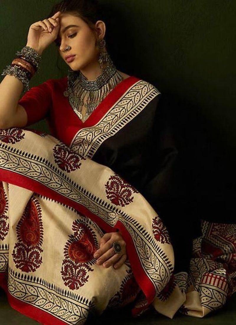 | Product Name | Black Floral, Paisely Print Soft Pure Cotton Saree With Blouse. | |