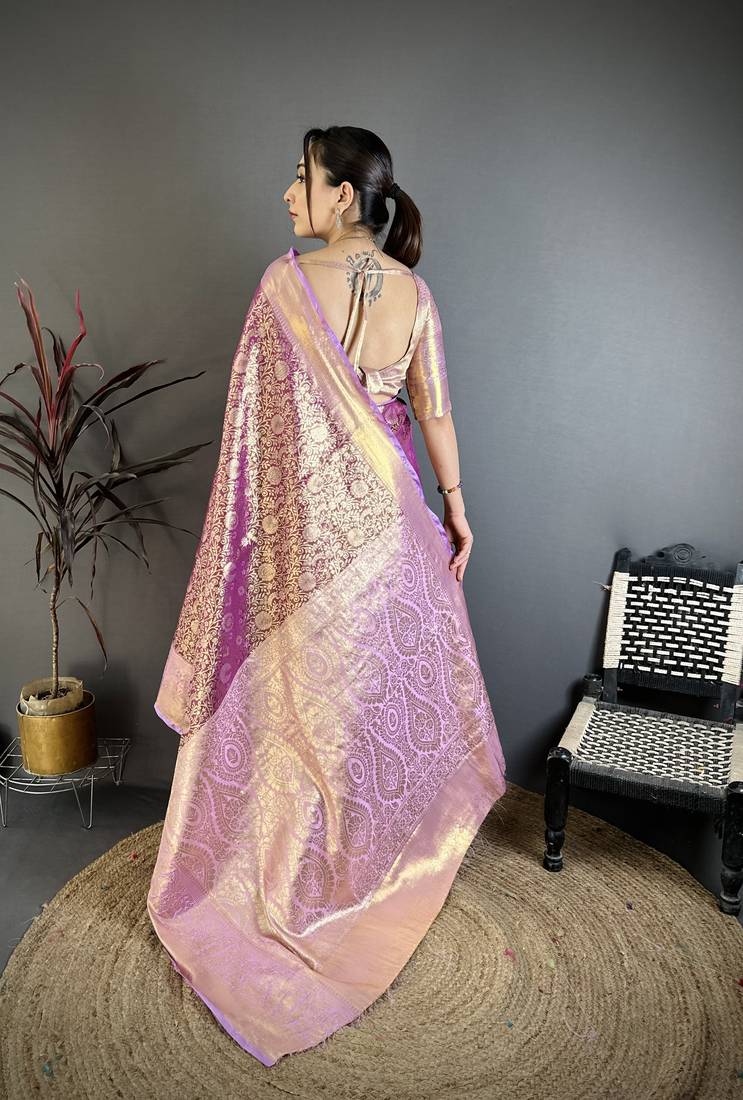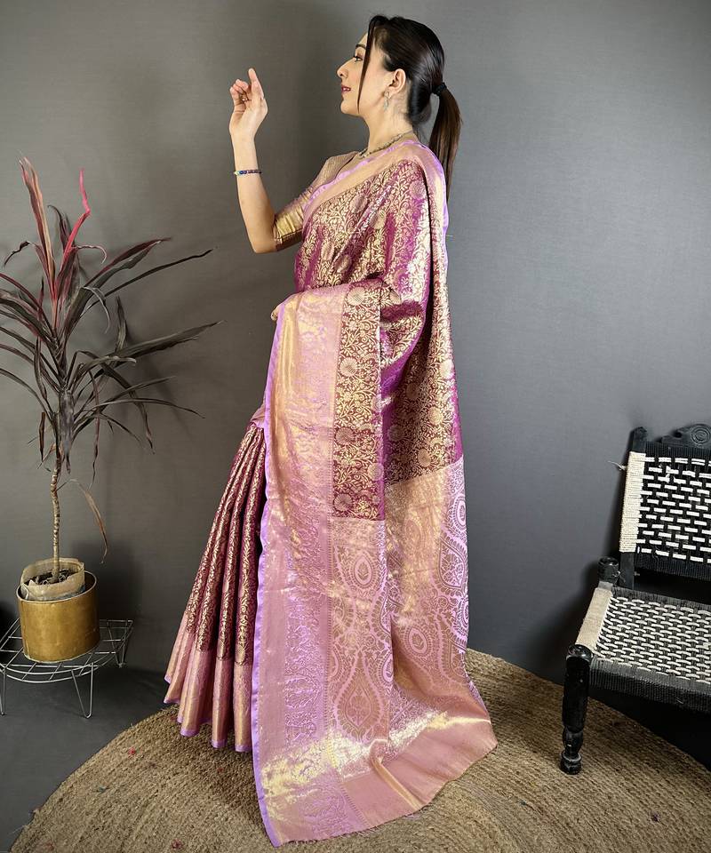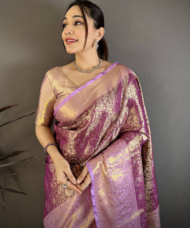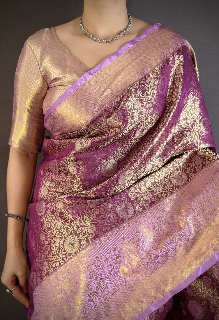 Magenta floral, kanjivaram, zari woven kanchipuram silk saree with blouse