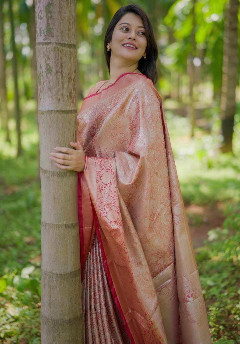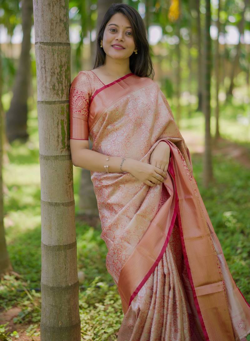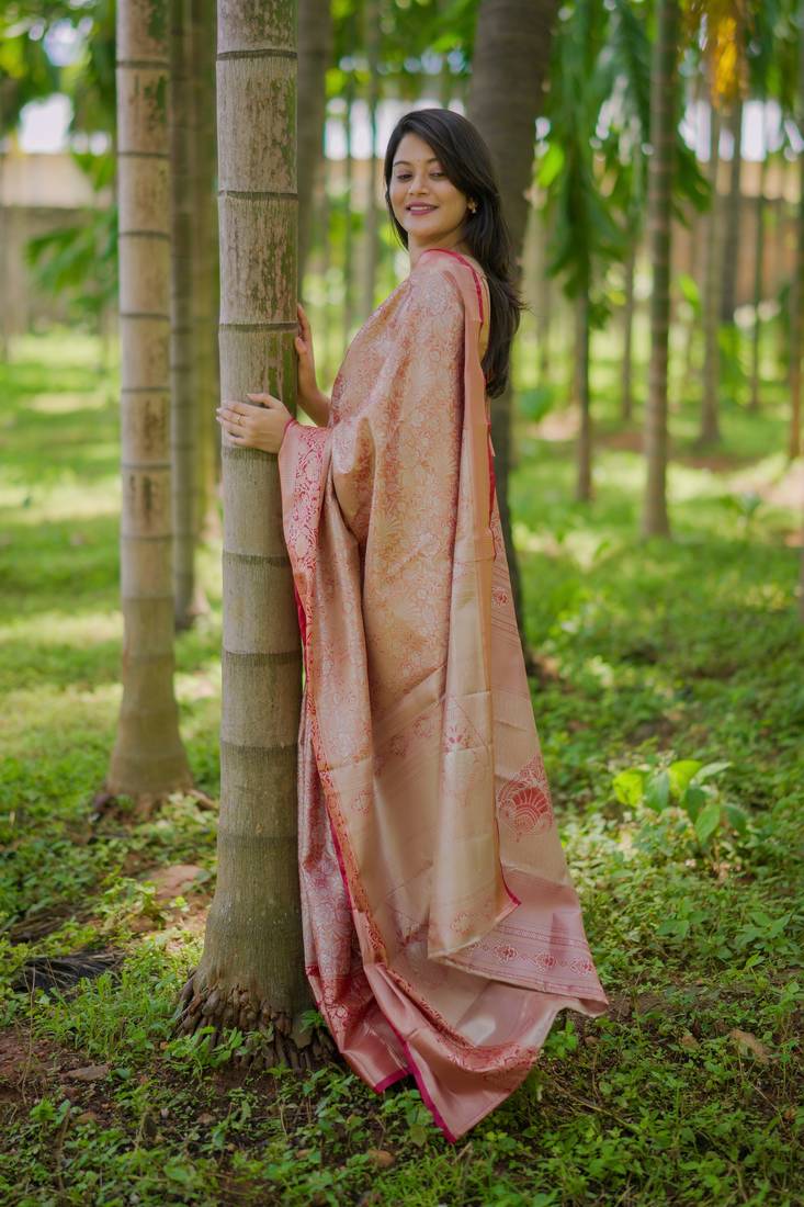 | Product Description | Elevate Your Ethnic Wardrobe With This Graceful Saree, Designed To Bring Together Understated Charm And Timeless Sophistication. Crafted From A Soft, Lustrous Fabric, This Saree Offers A Smooth Drape And A Lightweight Feel, Making It Perfect For All Day Wear. The Saree Features Delicate Woven Patterns Spread Across The Body, Enhanced With A Subtle Sheen That Reflects Refined Elegance. The Tonal Border And Pallu Are Adorned With Intricate Zari Detailing, Adding Depth And A Touch Of Traditional Richness Without Overpowering The Overall Look. |