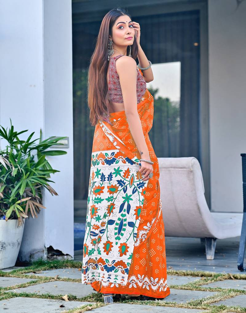 | Product Name | Orange Block Print Soft Pure Cotton Saree With Blouse. | |