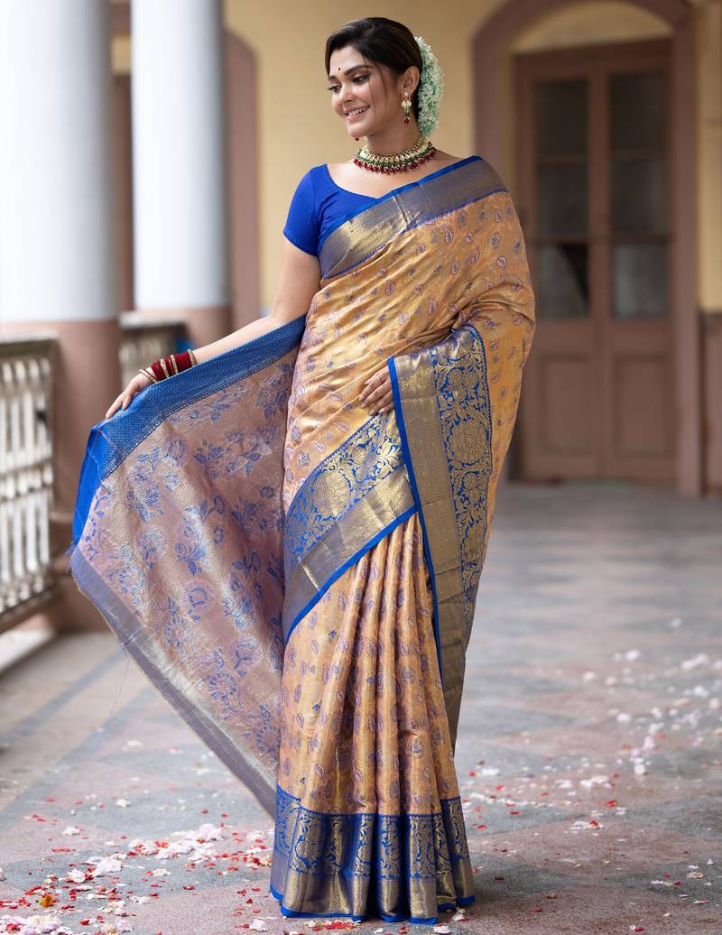 | Product Name | Peach Floral, Zari Work Kanjivaram Semi Silk Saree With Blouse | |