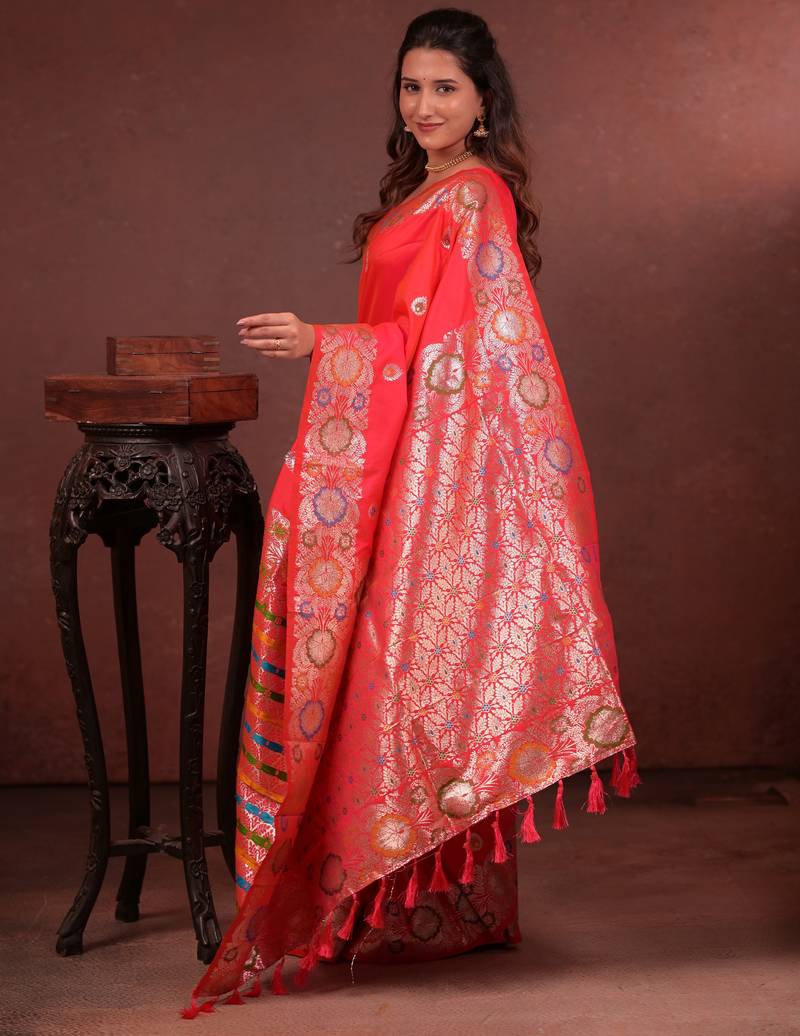 | Product Name | Pink Floral, Zari Work Slik Blend Saree With Blouse | |