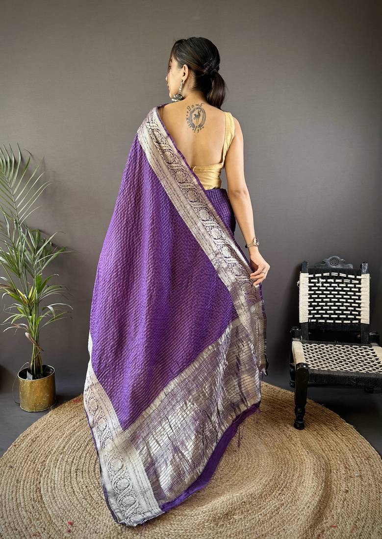| Product Name | Purple Checkered, Floral, Zari Woven Pure Naylon Viscose Saree With Blouse | |