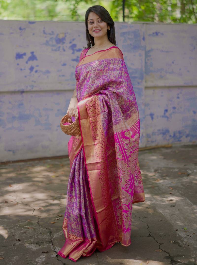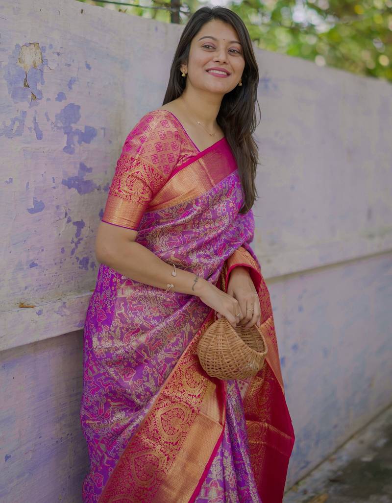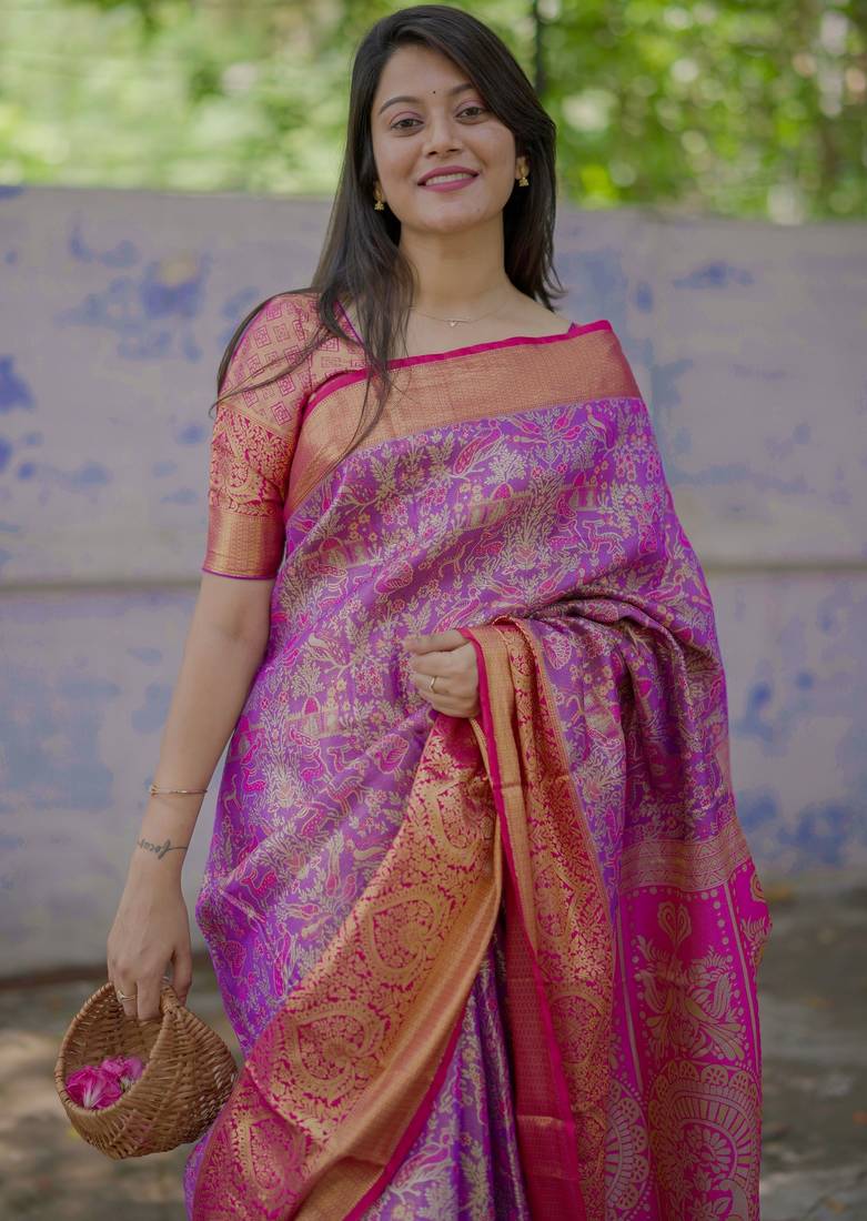 Purple floral, meenakari, zari woven kanjivaram silk saree with blouse
