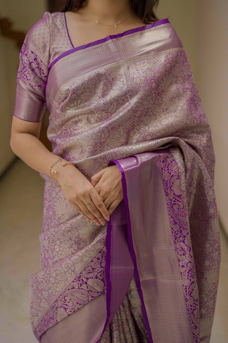 | Product Name | Purple Floral & Paisley Kanchipuram Silk Saree With Blouse | |