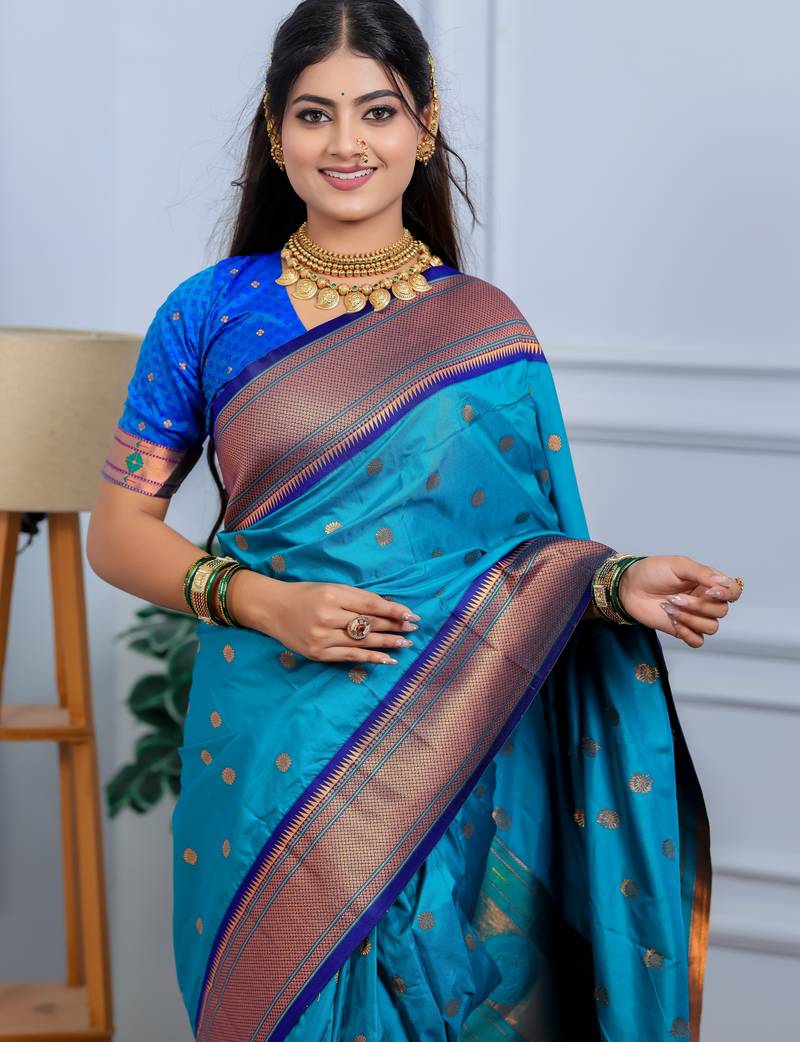 Saree : Color- Teal / Fabric- Pure Silk