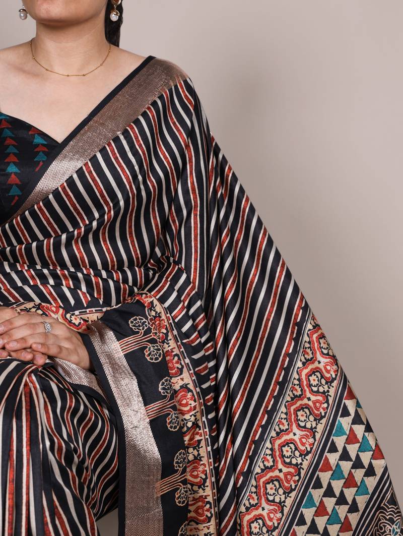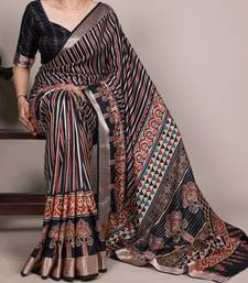 Black elegant tussar silk printed with viscose border saree