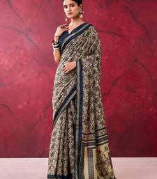 Black luxurious chanderi cotton printed with zari weaving work saree