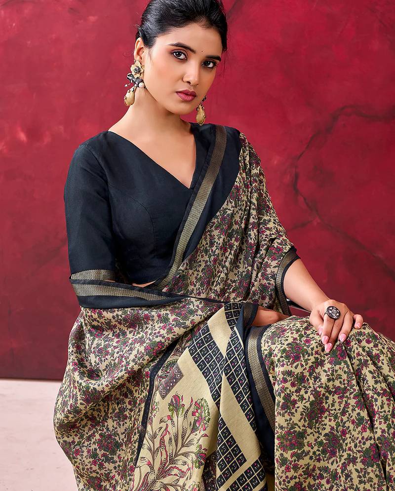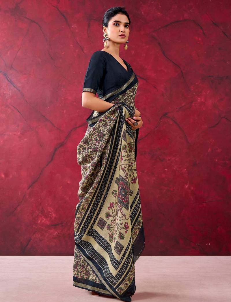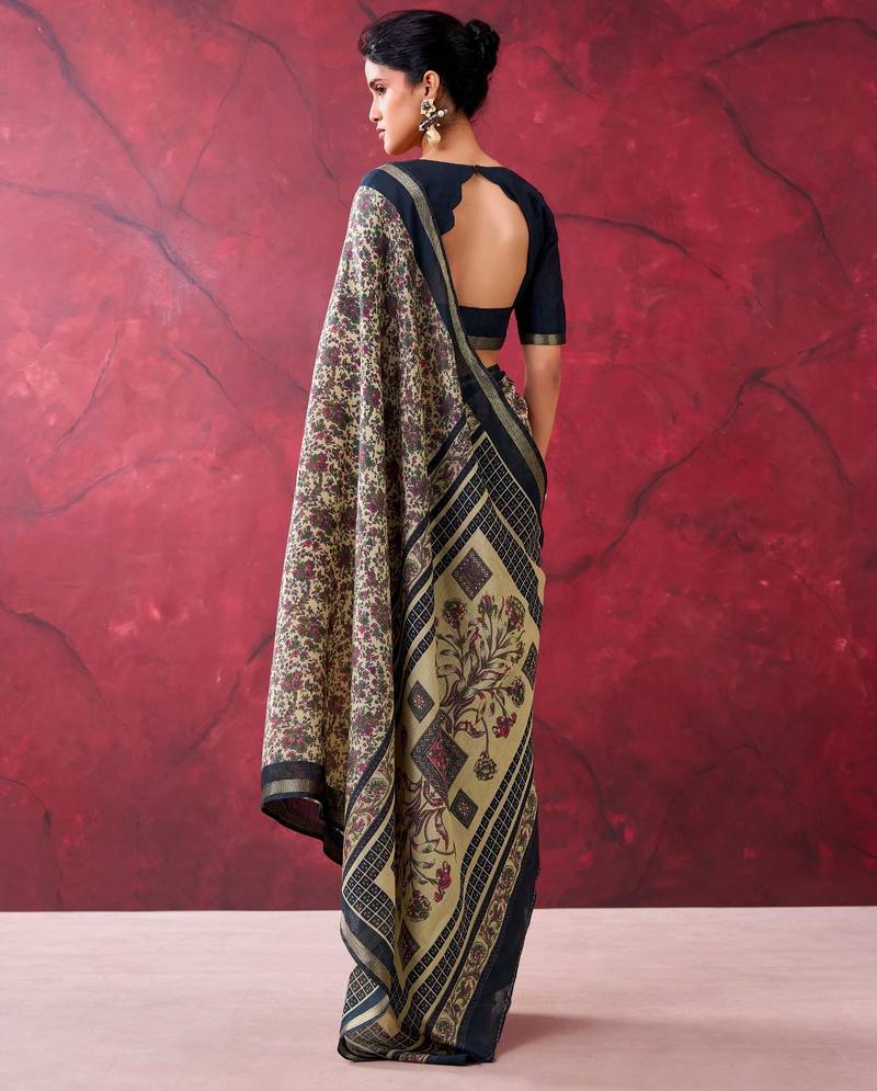 | Product Name | Black Luxurious Chanderi Cotton Printed With Zari Weaving Work Saree | |