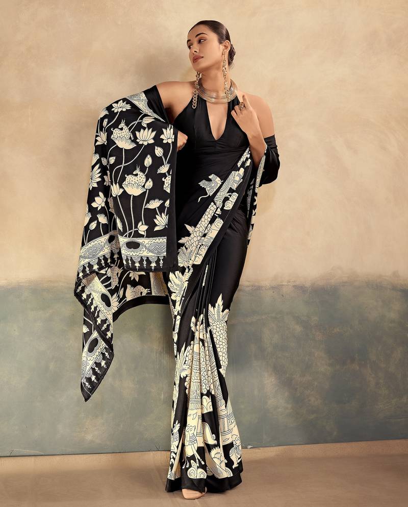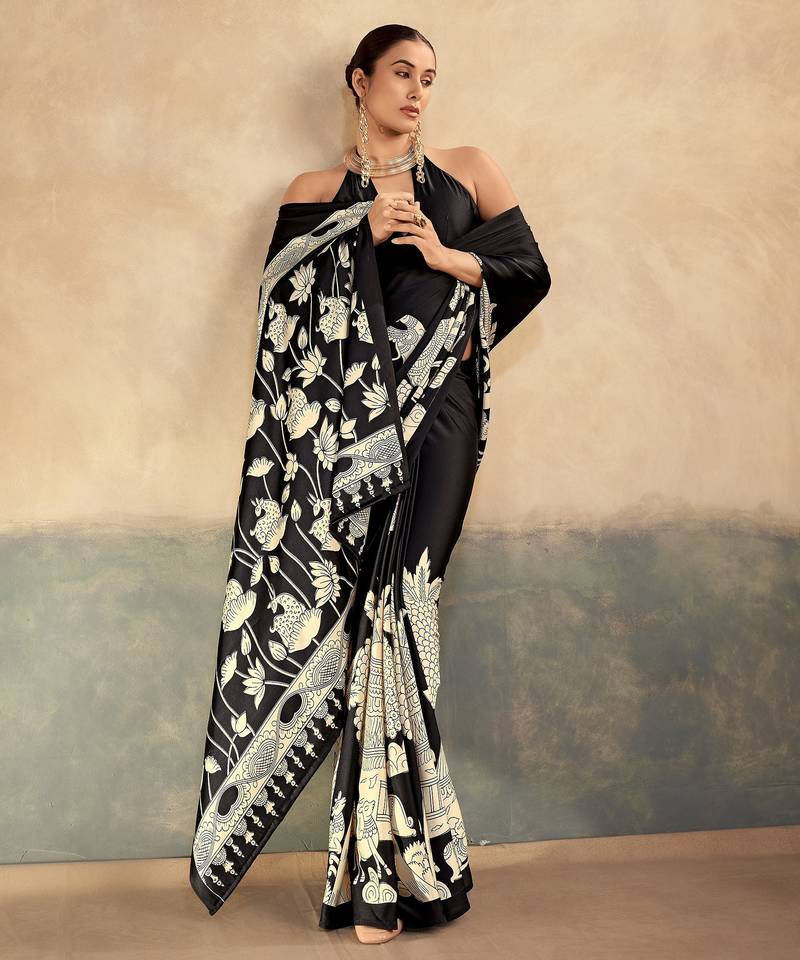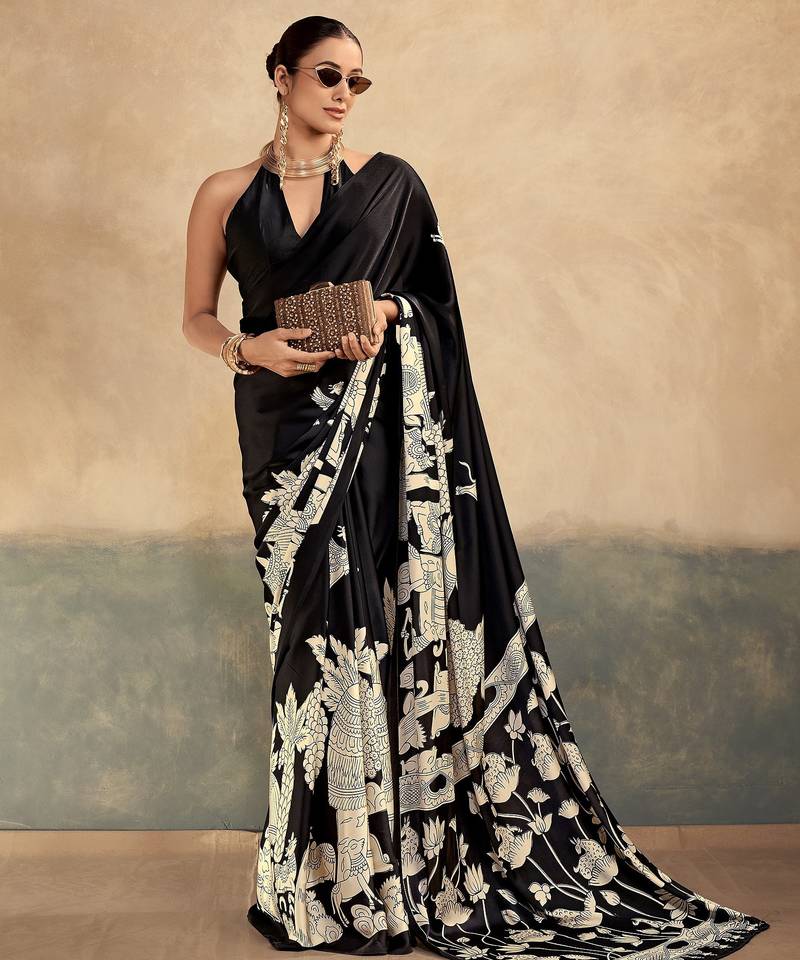 | Product Name | Black Luxurious Kalamkari Art Printed Satin Silk Saree | |