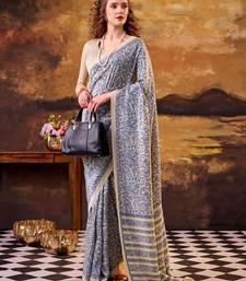 Blue elegance tussar silk printed saree with unstitched blouse