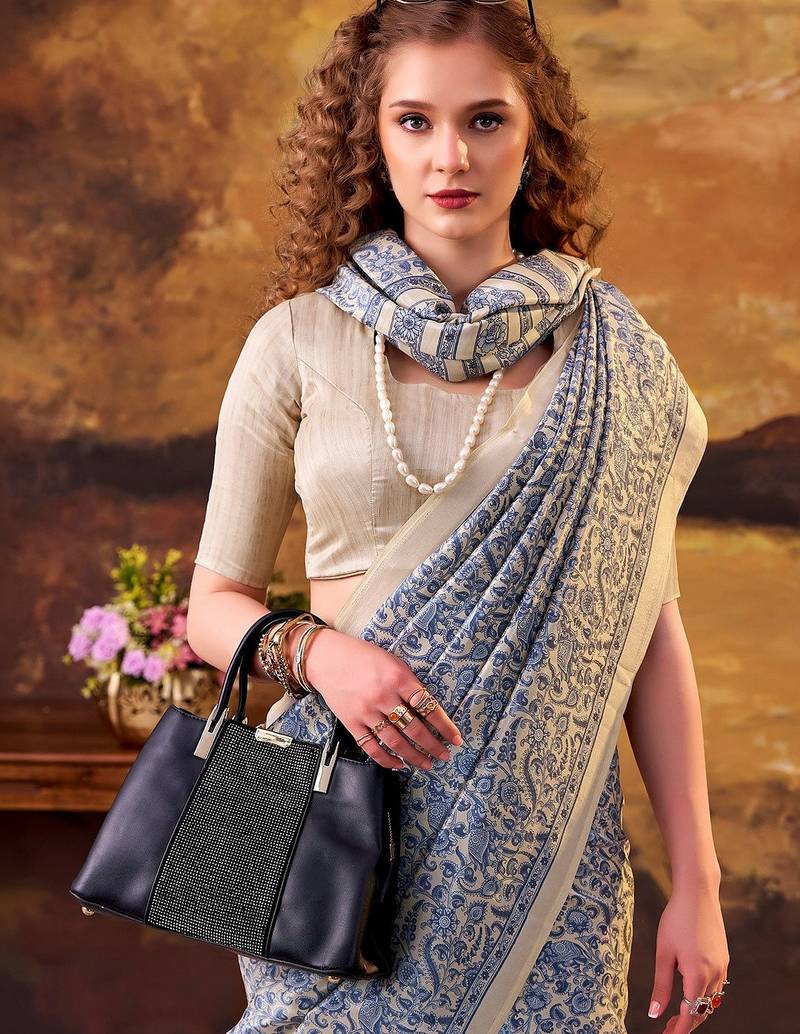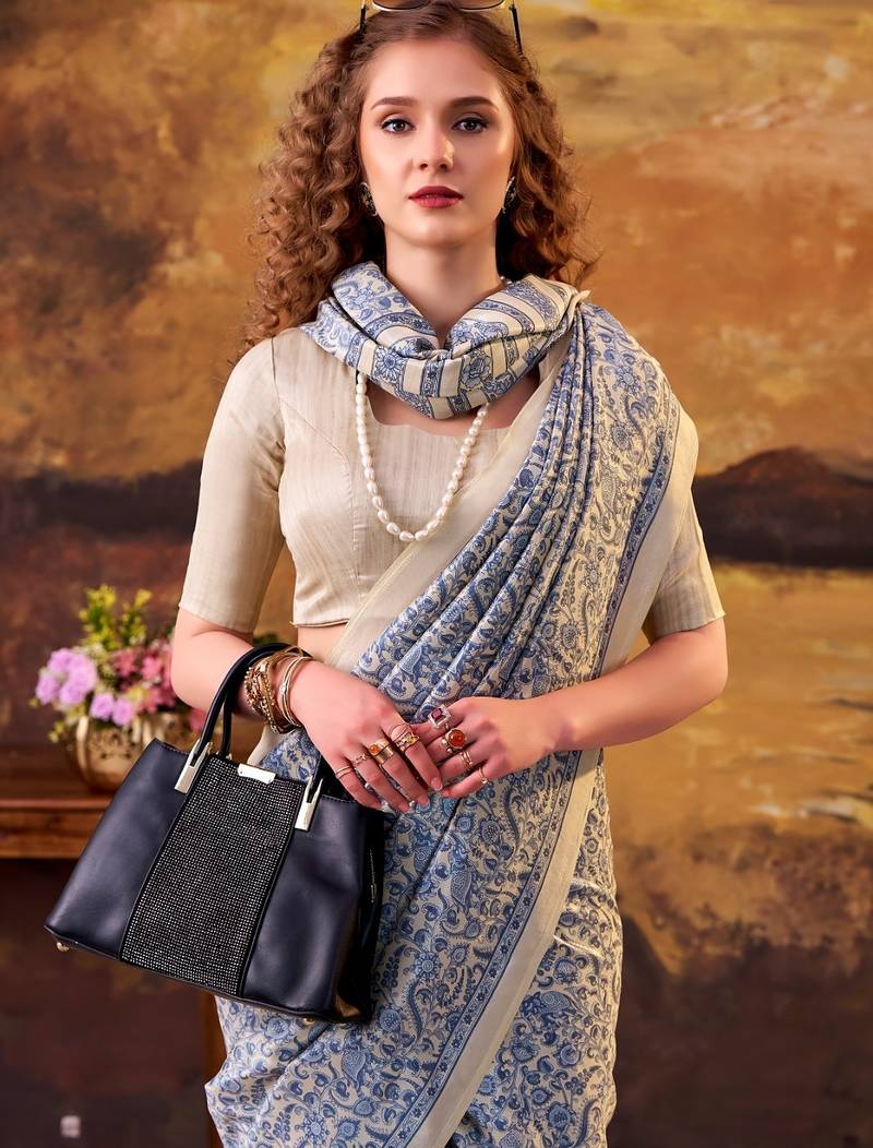 | Product Name | Blue Elegance Tussar Silk Printed Saree With Unstitched Blouse | |