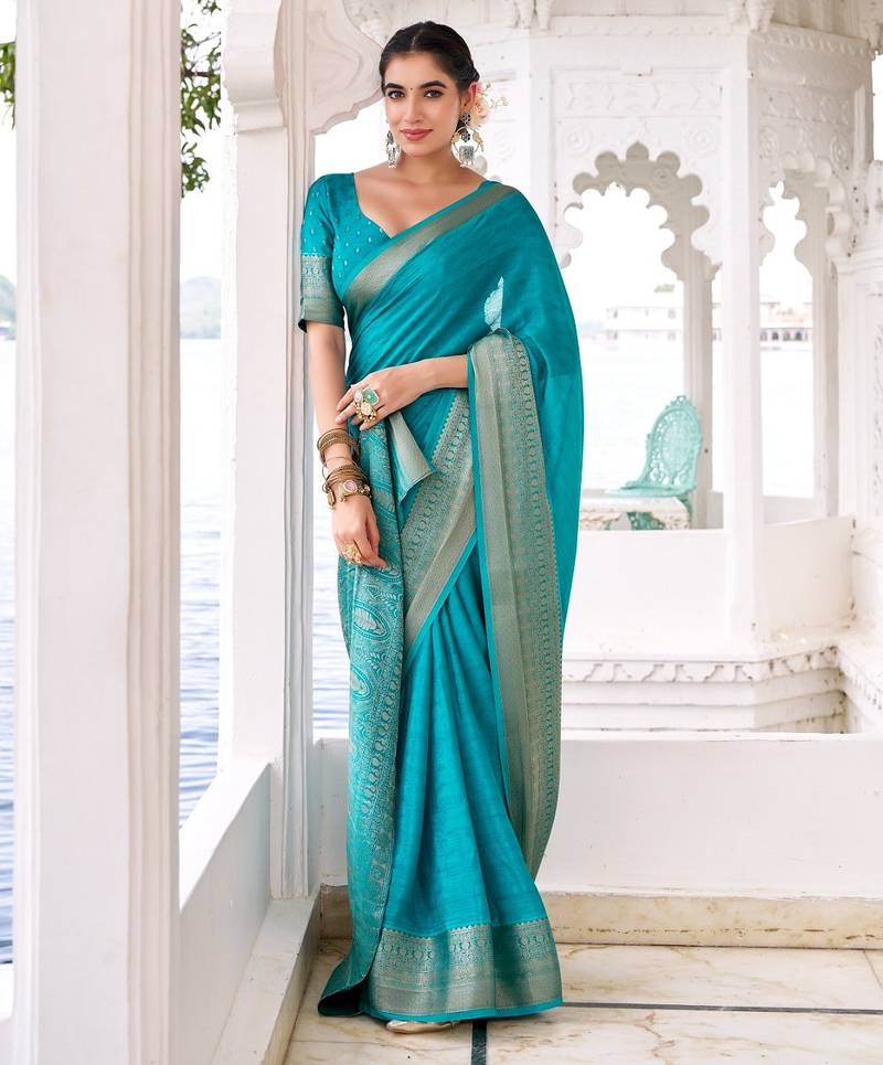| • | Saree | : | Color- Turquoise / Fabric- Art Silk |