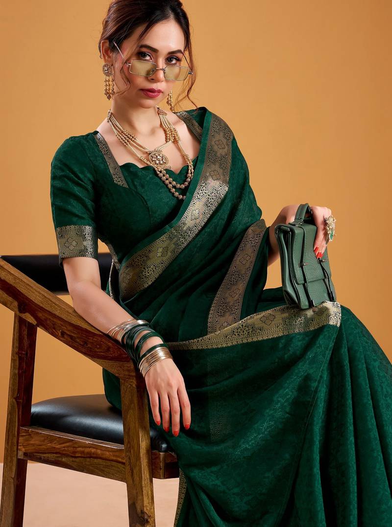 | Product Name | Green Festival Vibes Polt Shimmer Zari Weaving Work Saree | |