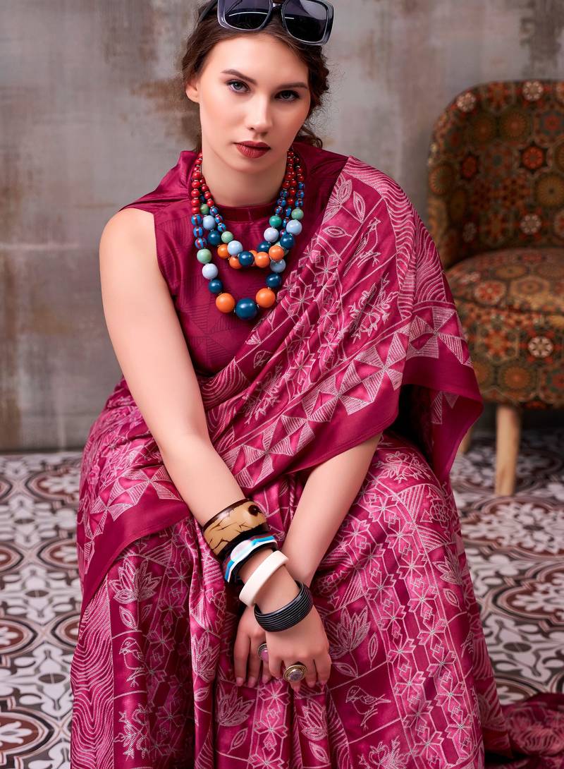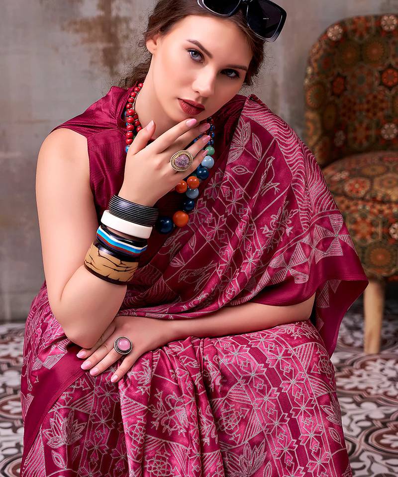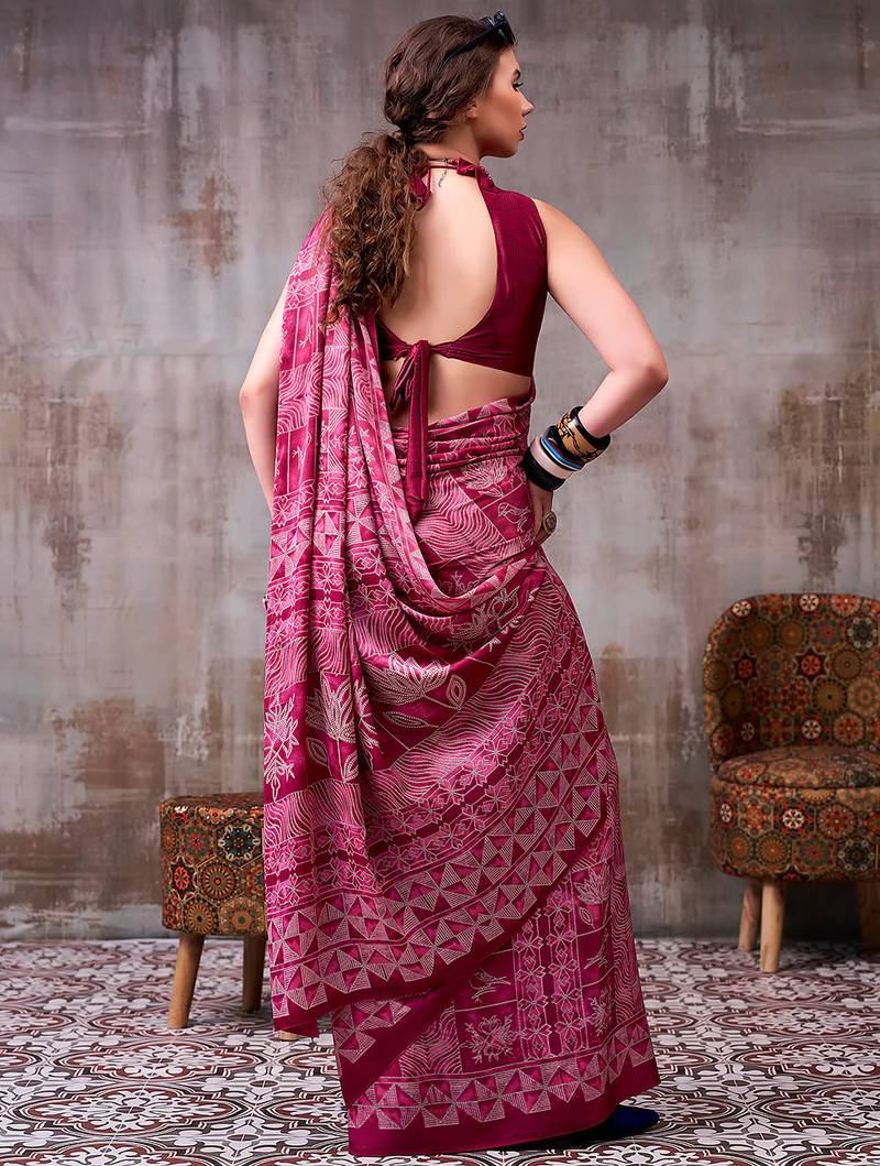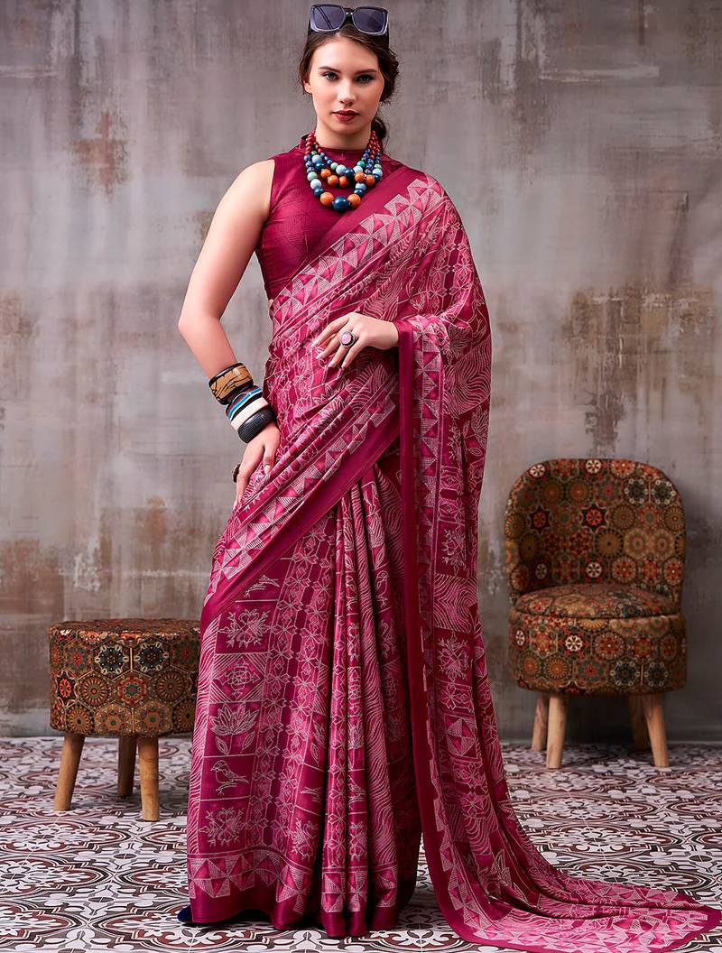 | Product Name | Magenta Elegance Satin Silk Floral & Geometric Printed Saree | |