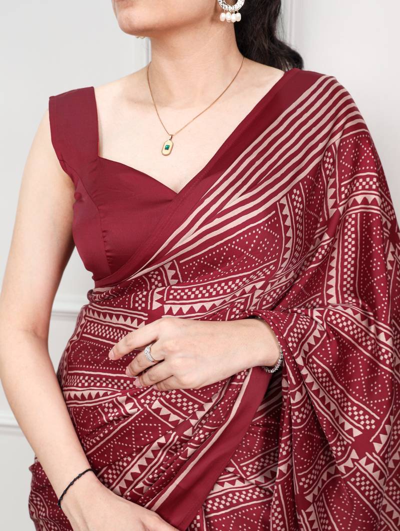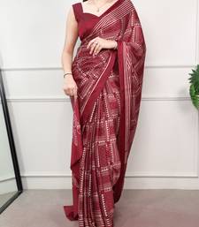 Maroon elegant satin silk printed saree