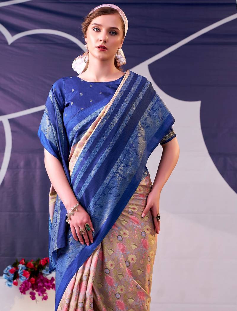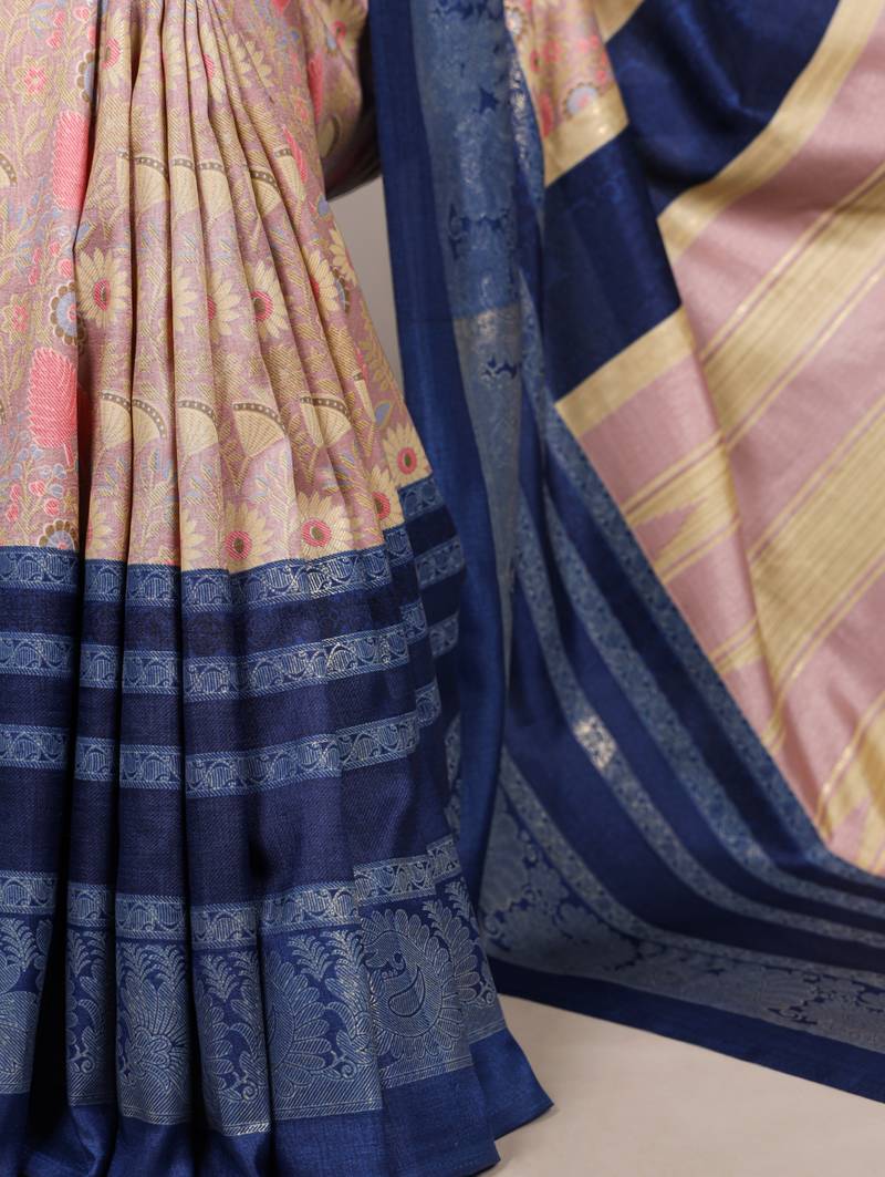 | Product Name | Navy Blue Beautiful Tussar Silk Floral Print With Foil Work Saree | |