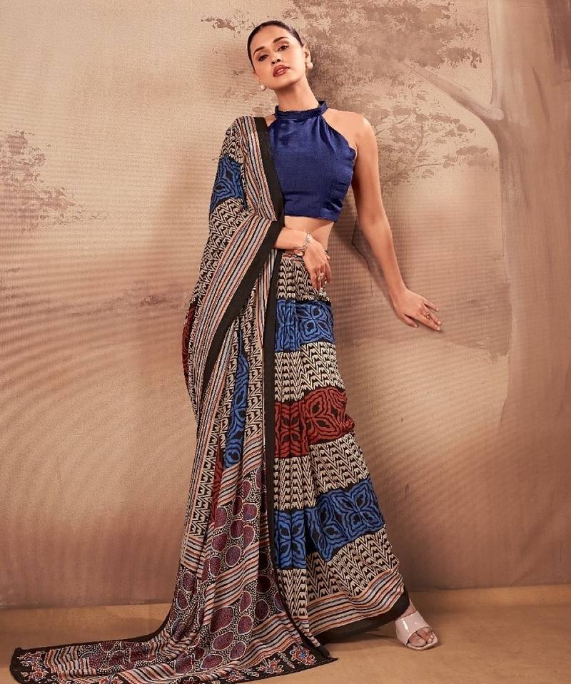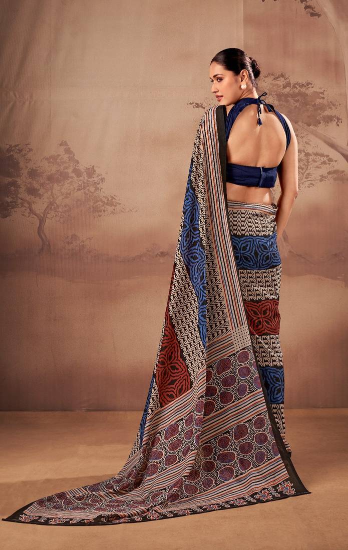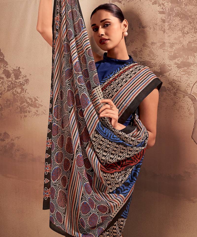 | Product Name | Navy Blue Beautifully Printed Poly Mal Cotton Saree | |