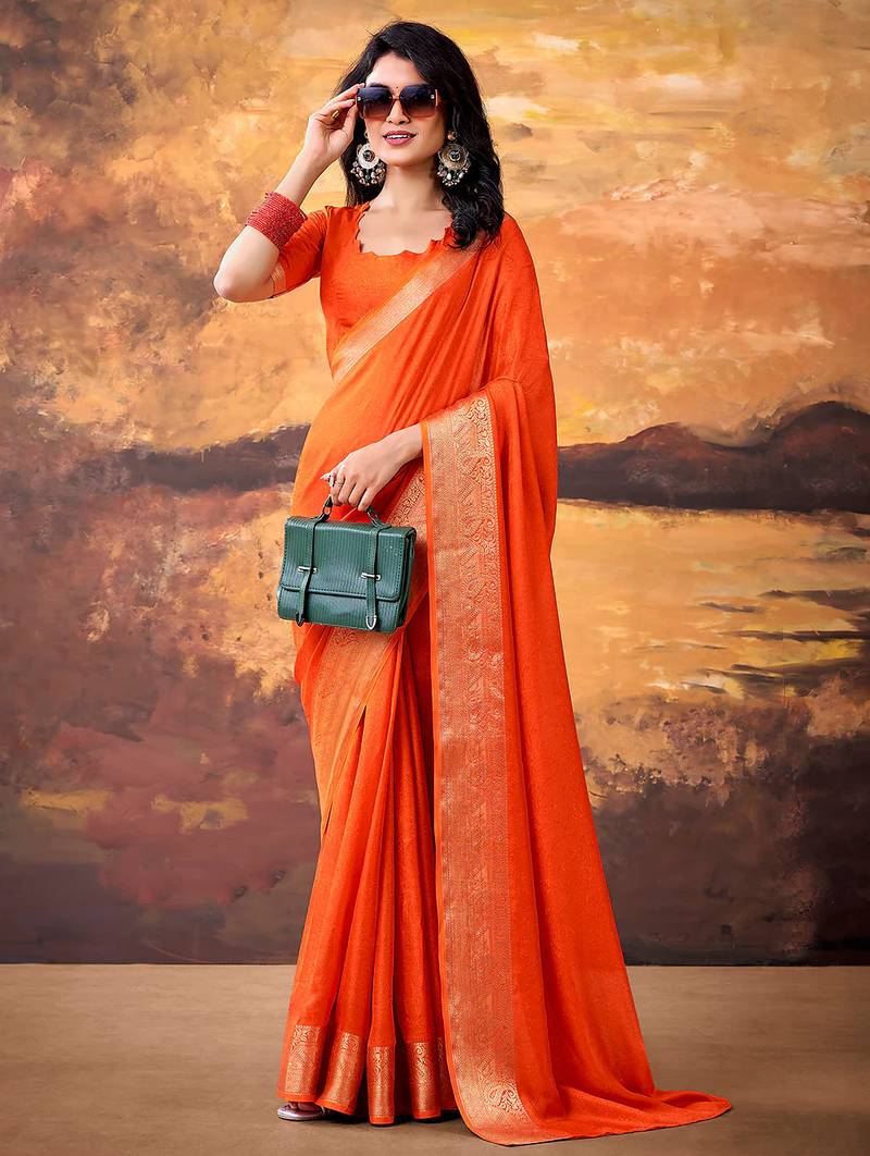Orange smoothy marshmallow zari weaving lightweight saree