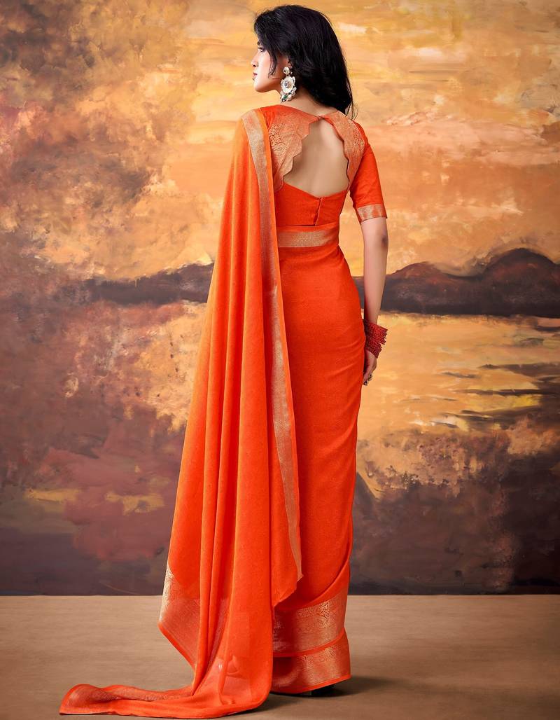 | Product Name | Orange Smoothy Marshmallow Zari Weaving Lightweight Saree | |