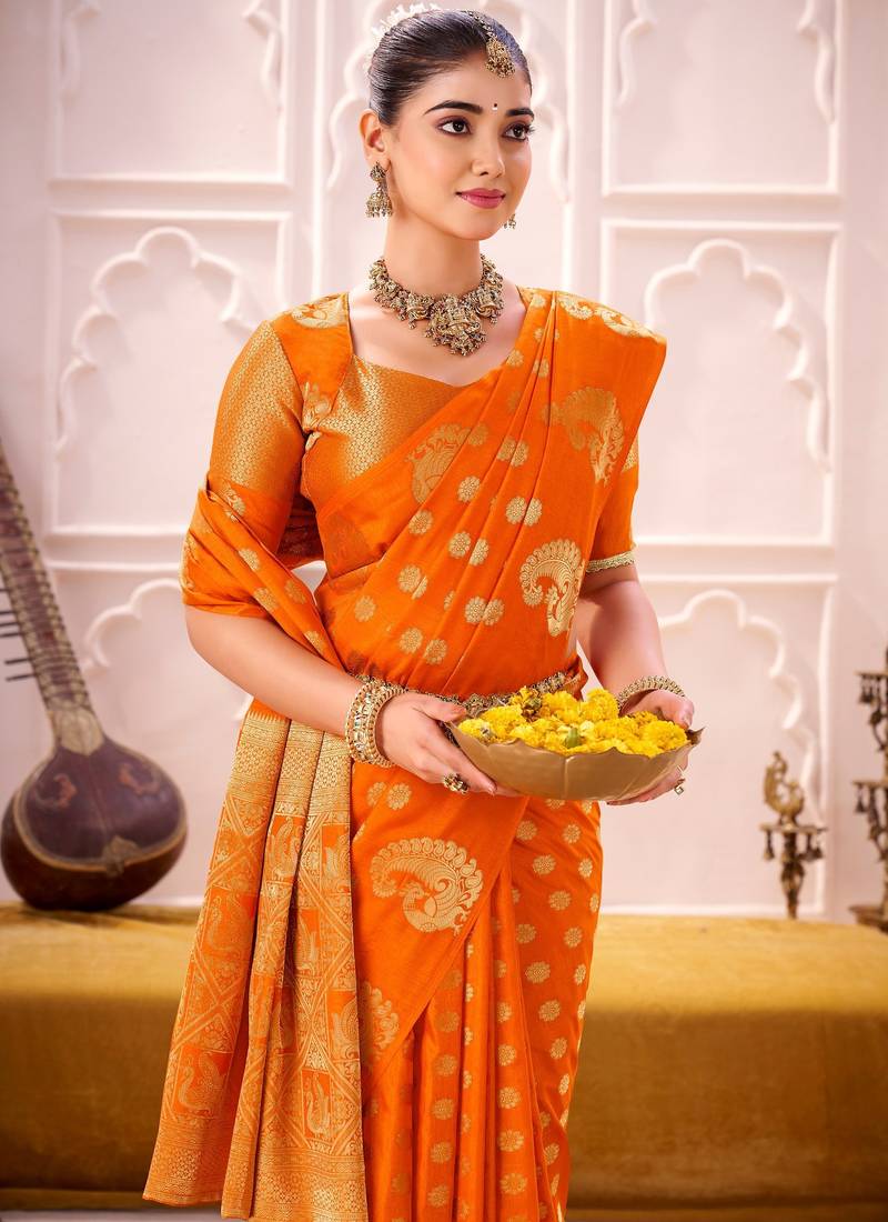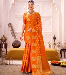 Orange treditional roop silk zari weaving saree